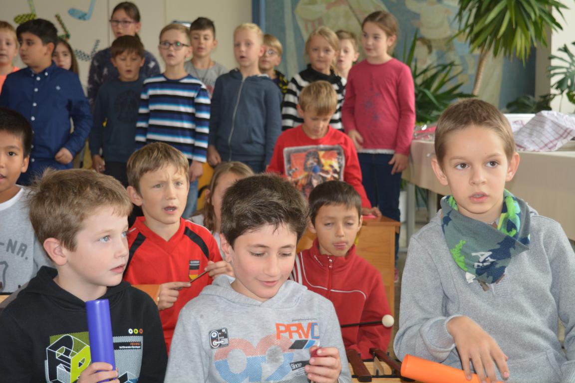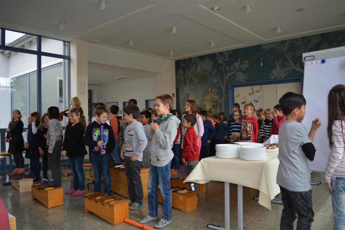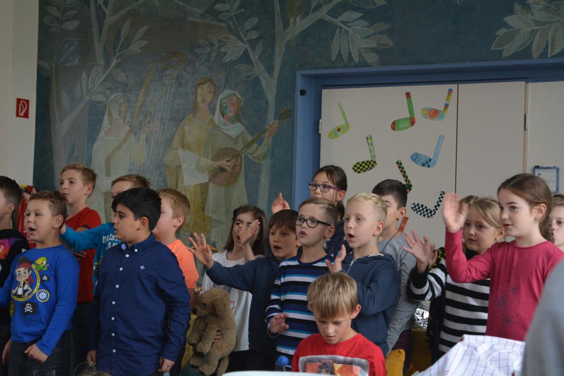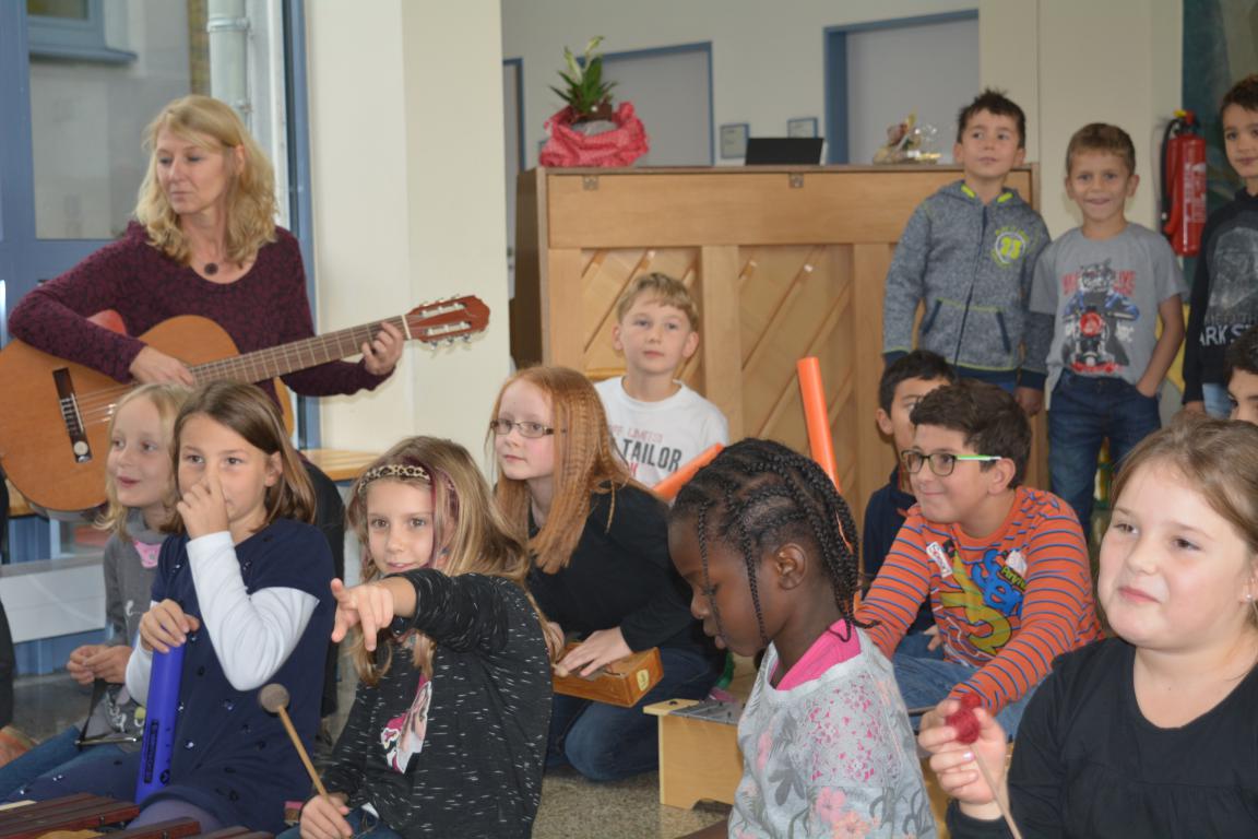Mit einem liebevoll von Bianca Buchwald einstudierten Lied - "Das Lied über dich" - eröffneten Kinder der Ganztagesklassen 2/3/4 mit Orffinstrumenten und gewaltigen Singstimmen die Veranstaltung.