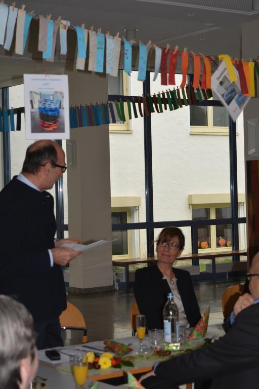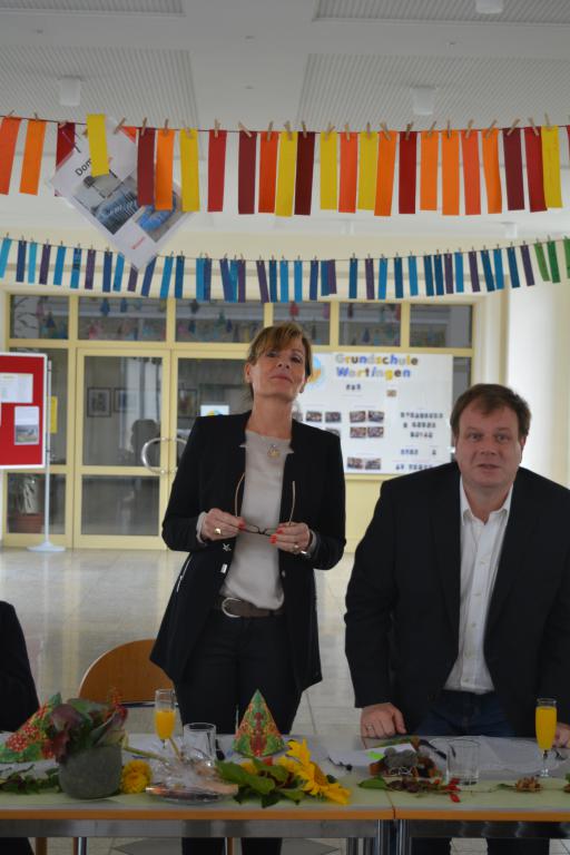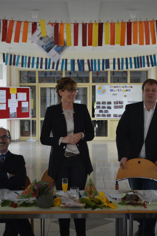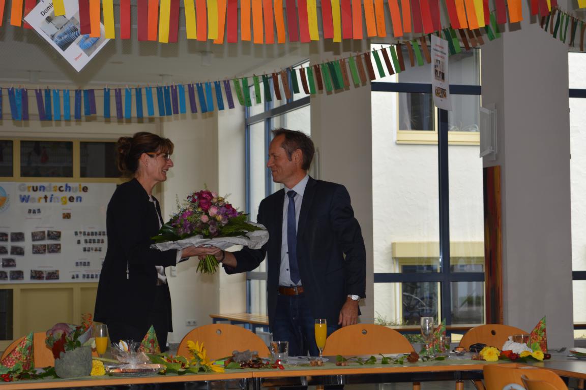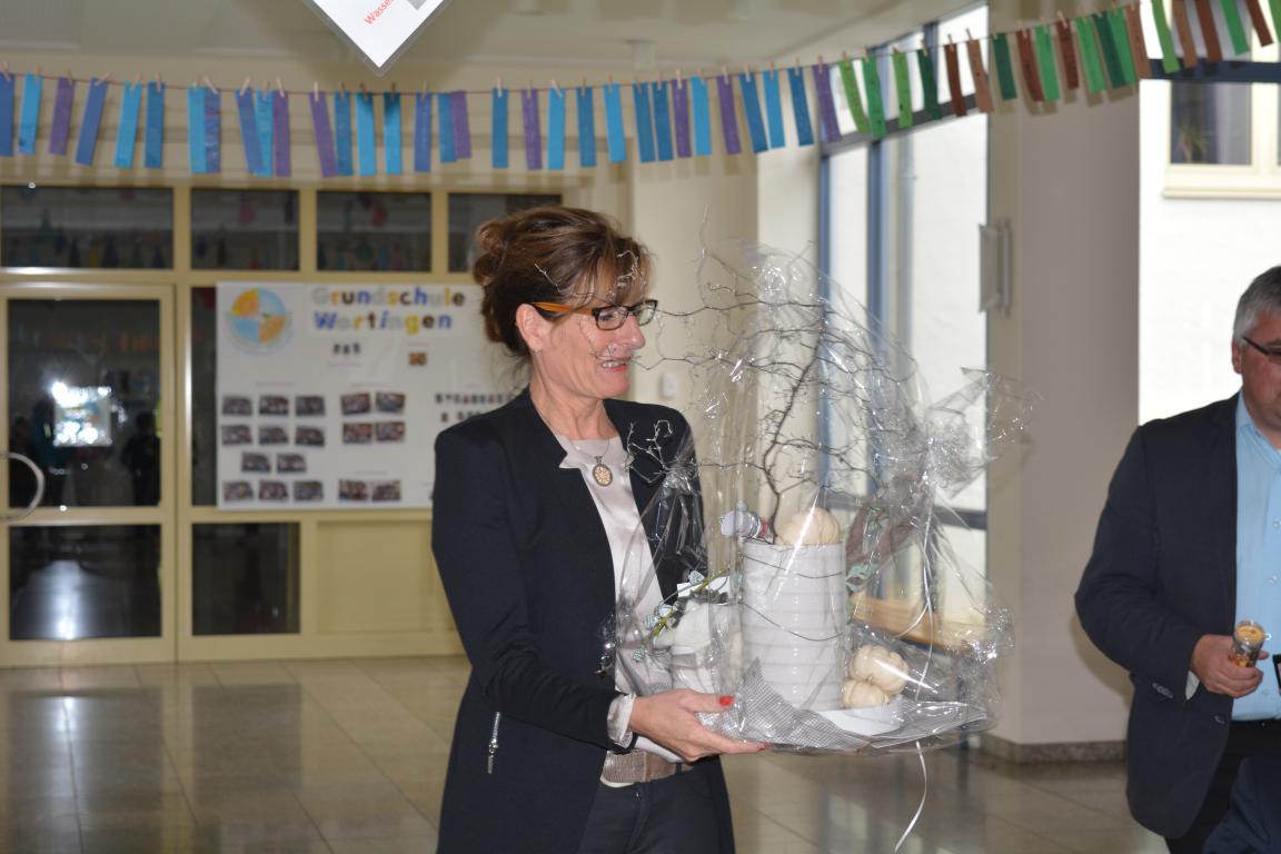 Konrektor Hans-Jürgen Seifert übernahm die Begrüßung und stellte anschaulich dar, dass die Wartezeit auf die neue Rektorin durchaus mit verschiedenen Gefühlen verbunden war. Schulamtsdirektor Wilhelm Martin unterstrich in seiner Rede, dass Verantwortungsbereitschaft und persönlicher Einsatz für die Schulleitung einer solch großen Grundschule unabdingbar wären. Aber gerade dies zeige sich in der Vita der neuen Leiterin, die schon als Lehrerin und Konrektorin die Wertinger Schule immer wieder positiv unterstützte.