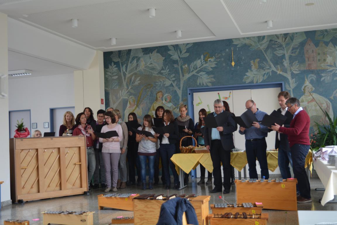 Eingerahmt vom Lehrerchor konnte der Oberbürgermeister Willy Lehmeier nur bestätigen, dass es eine Freude sei, Frau Grandé willkommen zu heißen. Der Wechsel von der Grundschule Zusamaltheim nach Wertingen sei ein geglückter Schachzug, der für alle Beteiligten sicherlich positiv sei.