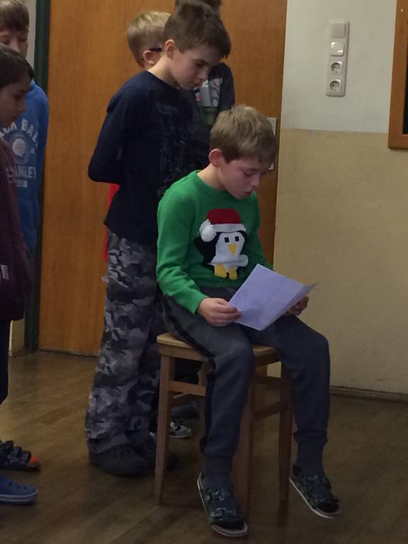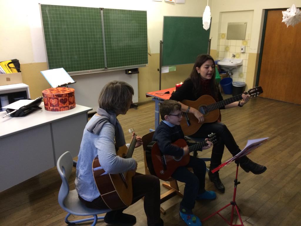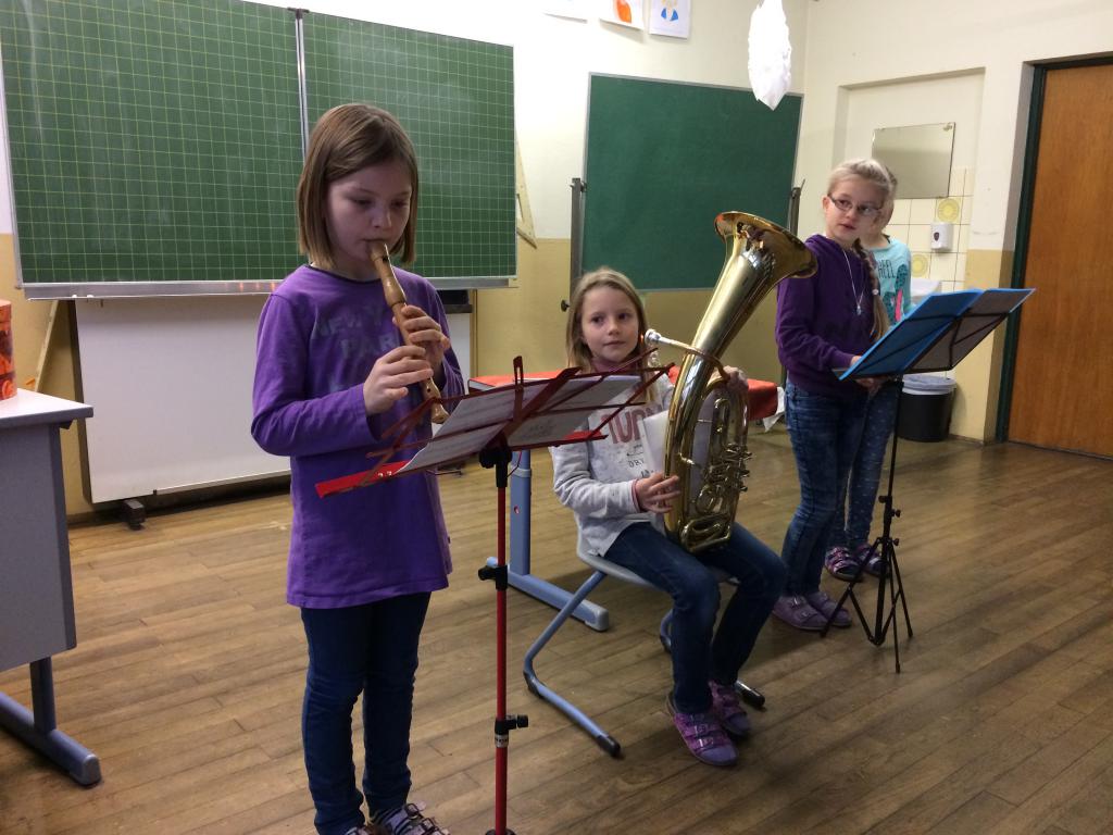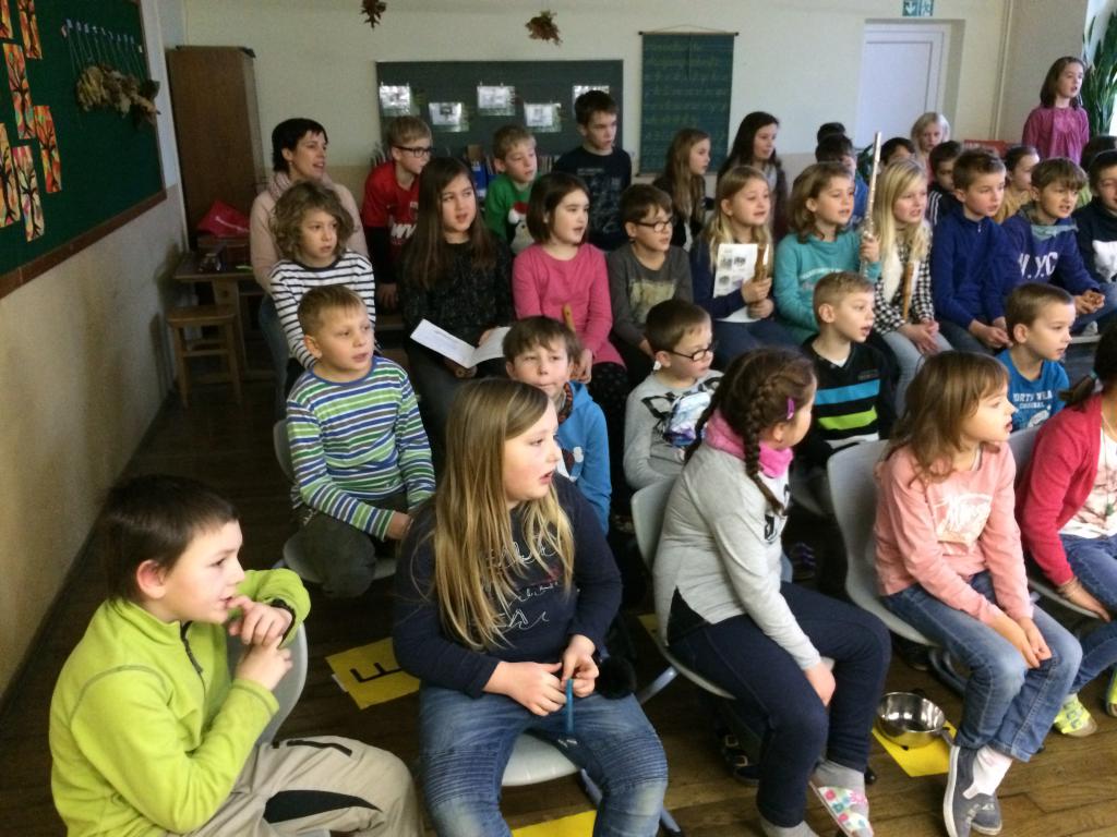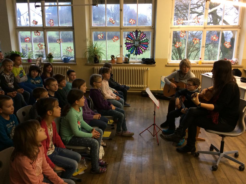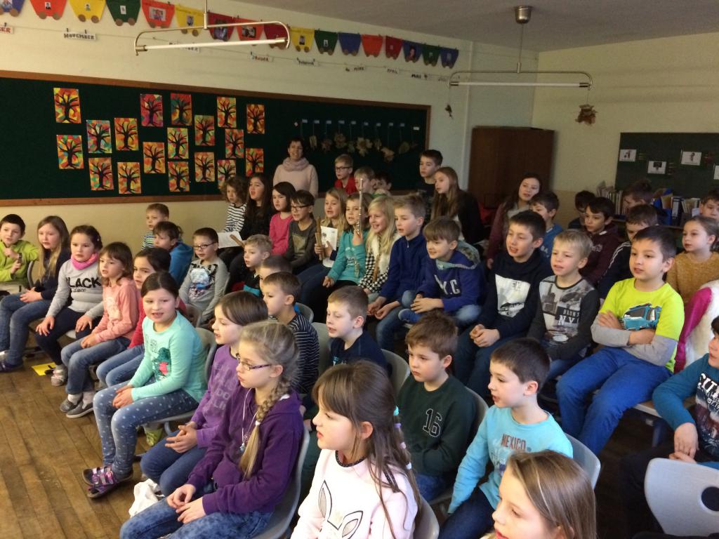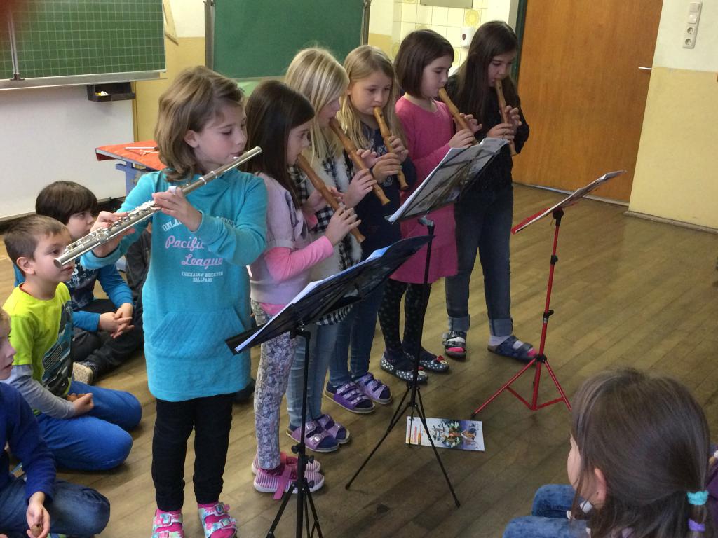 Im Advent wurde in den Klassen 2d, 3d und 4d eifrig auf die Weihnachtsfeier geprobt. Am letzten Schultag vor den Ferien war es dann endlich soweit: Alle Gottmannshofer Schüler und Lehrer trafen sich in einem Klassenzimmer und begannen die Feier mit dem gemeinsamen Lied „Wir sagen euch an“. Dann führte jede Klasse einige Stücke auf. Die Zweitklässler sangen z.B. „In der Weihnachtsbäckerei“ vor, die Kinder der 3d musizierten ein Nuss-Rondo und die Viertklässler zeigten einen weihnachtlichen Jodelsong. Außerdem hatten Schüler aus allen Klassen ihre Instrumente mitgebracht und spielten adventliche Lieder auf der Flöte, der Klarinette, der Querflöte usw. vor. Nachdem die Aufführung mit einem gemeinsamen Lied beendet wurde, gingen alle ins „Adventscafé“. Dort saßen Kinder und Lehrer noch ein wenig gemütlich beisammen und ließen sich Punsch und Plätzchen schmecken.