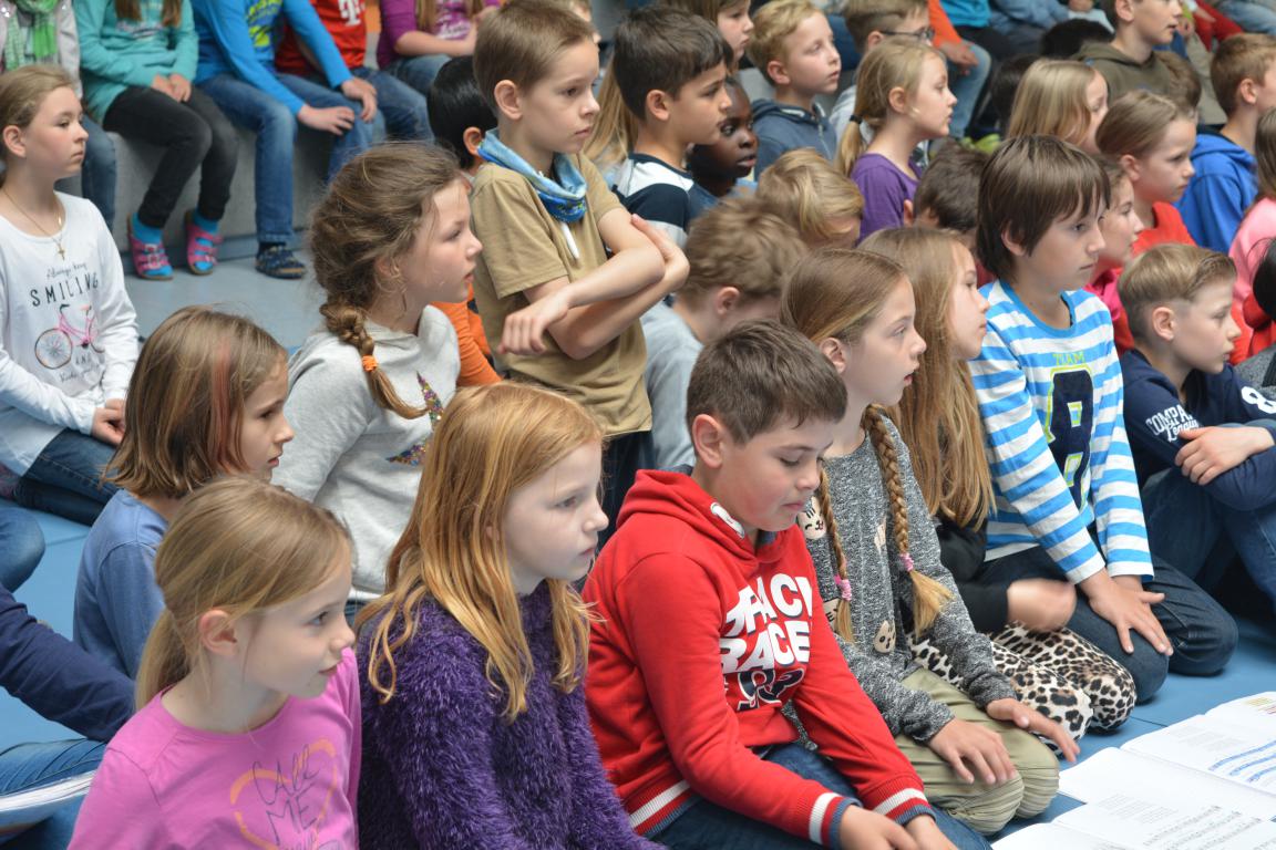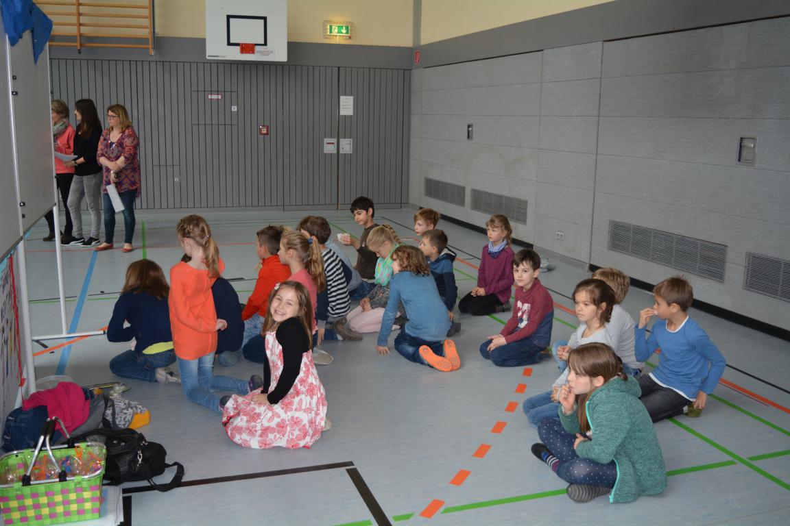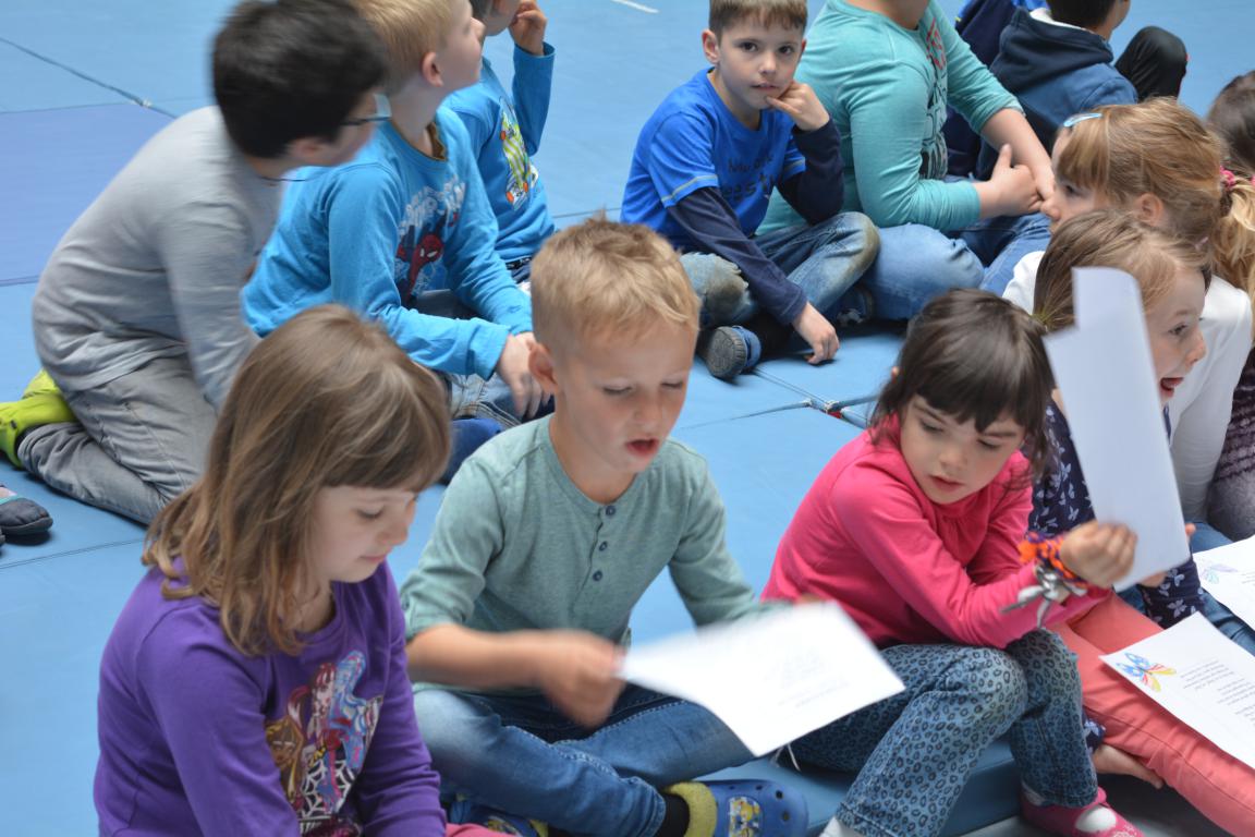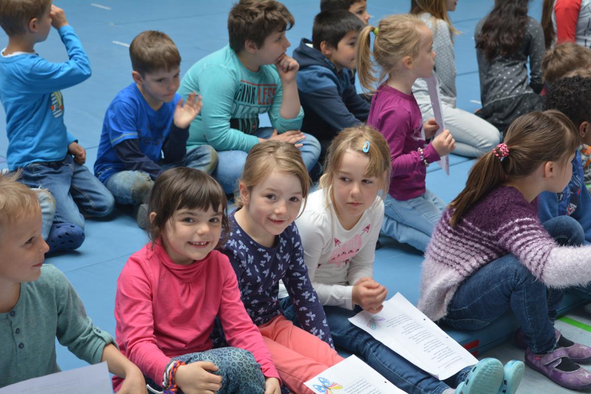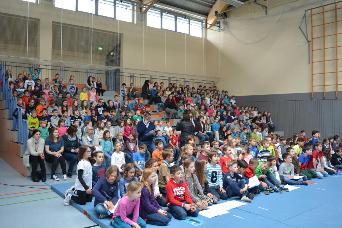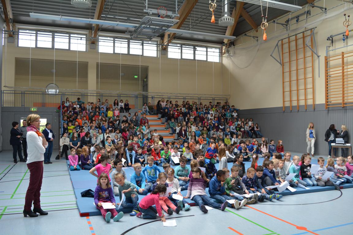 In einer „Konferenz der Klassensprecher“ wurden alle neuen Ideen mit Schulleiterin Christiane Grandé und Lehrerin Simone Motus gesammelt. Besonders gut gefiel den Kindern das Bild einer Drittklässlerin aus Gottmannshofen. Sie regte an, die neuen Schulregeln in Luftballons zu schreiben, die dann unsere Schule, also unsere Gemeinschaft, tragen sollen. Mit all den Anregungen, Ideen und Ratschlägen im Gepäck tagte das Team Hausordnung, bestehend aus den Lehrerinnen Astrid Wurm, Sibylle Kapfer und Simone Motus, um dann der Lehrerkonferenz die neue Hausordnung zu präsentieren. In einem kleinen Festakt wurde sie der gesamten Schülerschaft von den Kindern der Klassen 1b, 3b und 3d mit ihren Lehrerinnen in Form von Liedern, Rollenspielen und dem neuen Wertinger Schulgedicht präsentiert. Schulleiterin Christiane Grandé führte durch das Programm und überreichte am Ende der Veranstaltung allen Klassen ein Plakat mit der neuen Hausordnung zusammen mit einer Tüte Luftballons als kleine Gedächtnisstütze.