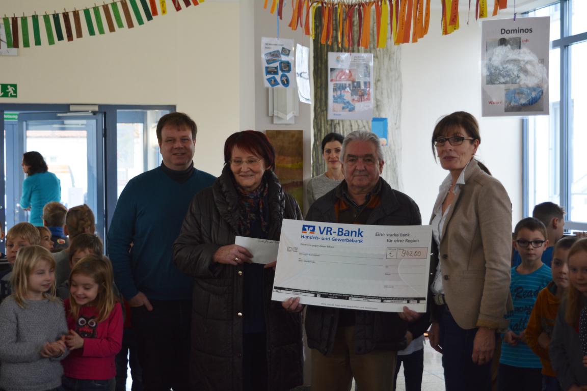 einen Scheck in Höhe von 942 € im Namen der Schule.